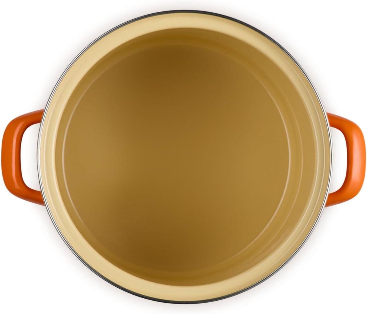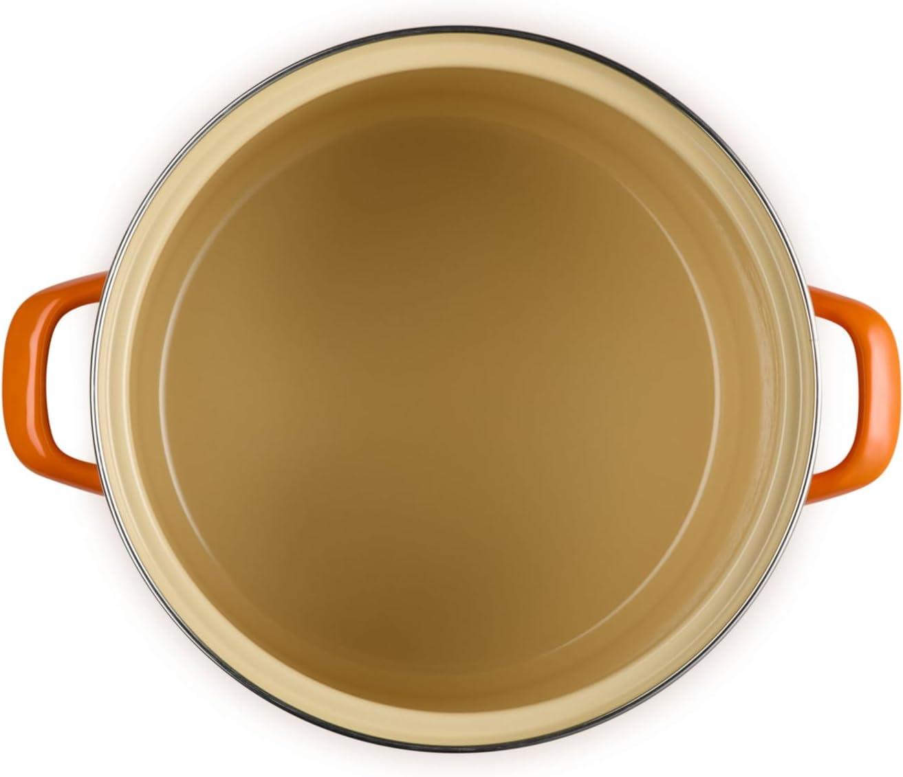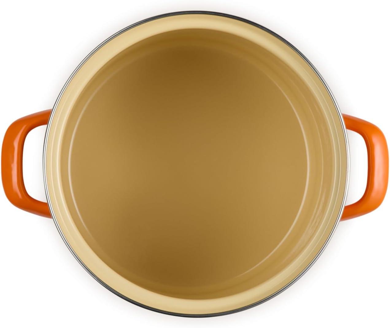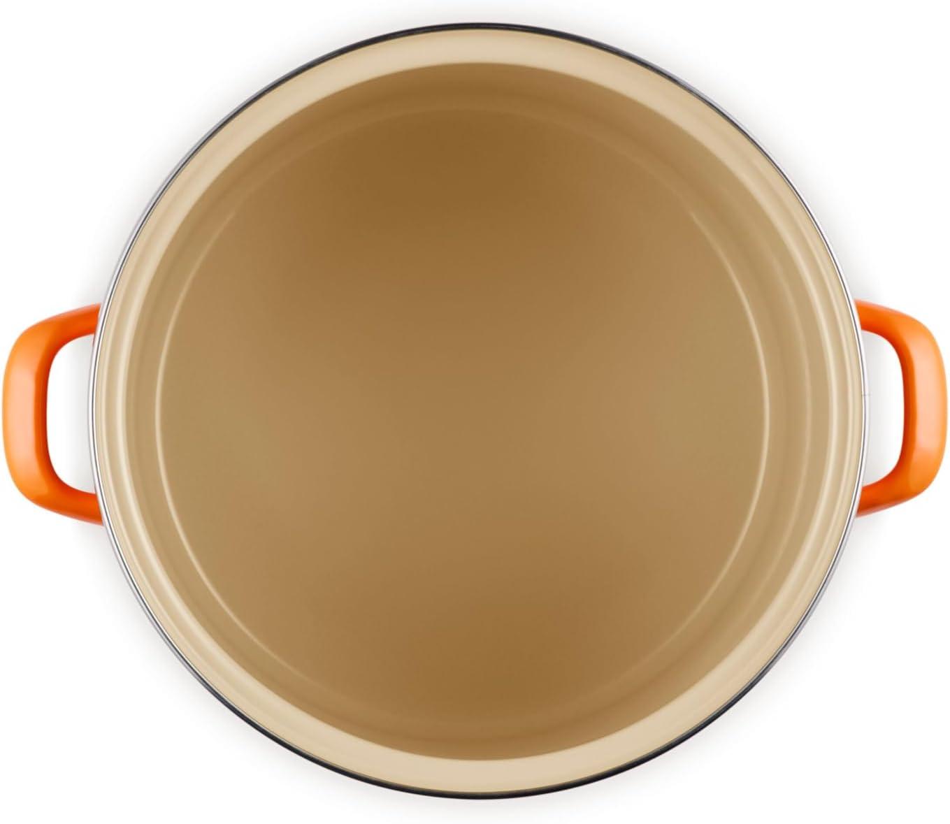 Le Creuset enamel on steel stockpots and kettles deliver the fastest-heating performance of premium carbon steel glazed in our beautiful palette of colors. Lightweight and durable, carbon steel rapidly brings water to a boil to speed up prep and cooking and retains heat to keep food and liquids warm. The easy-to-clean colorful porcelain enamel coating is non-reactive and resistant to stains and flavors, making enamel on steel ideal for everyday use.