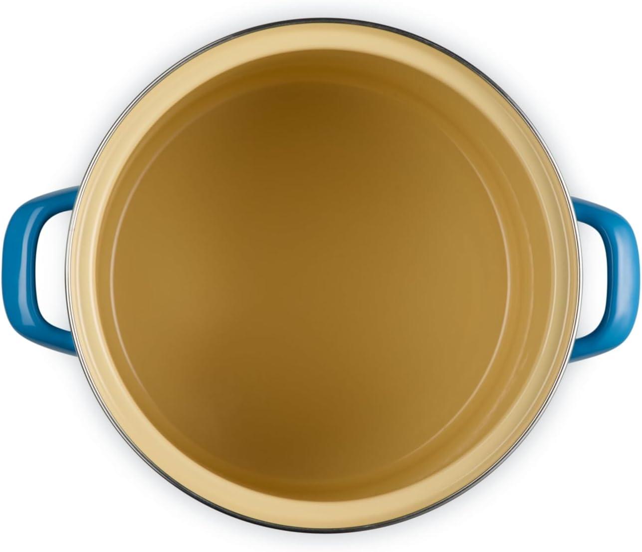 Le Creuset enamel on steel stockpots and kettles deliver the fastest-heating performance of premium carbon steel glazed in our beautiful palette of colors. Lightweight and durable, carbon steel rapidly brings water to a boil to speed up prep and cooking and retains heat to keep food and liquids warm. The easy-to-clean colorful porcelain enamel coating is non-reactive and resistant to stains and flavors, making enamel on steel ideal for everyday use.