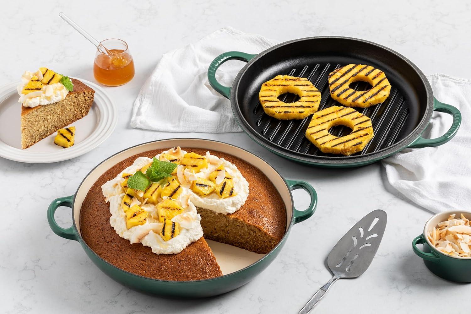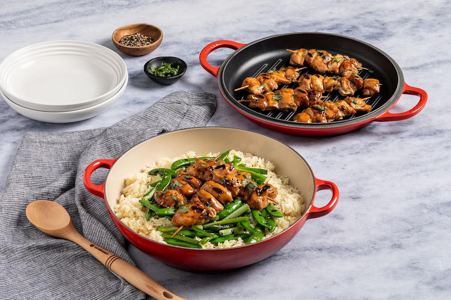 Enameled cast iron delivers superior heat distribution and retention; Ready to use, requires no seasoning