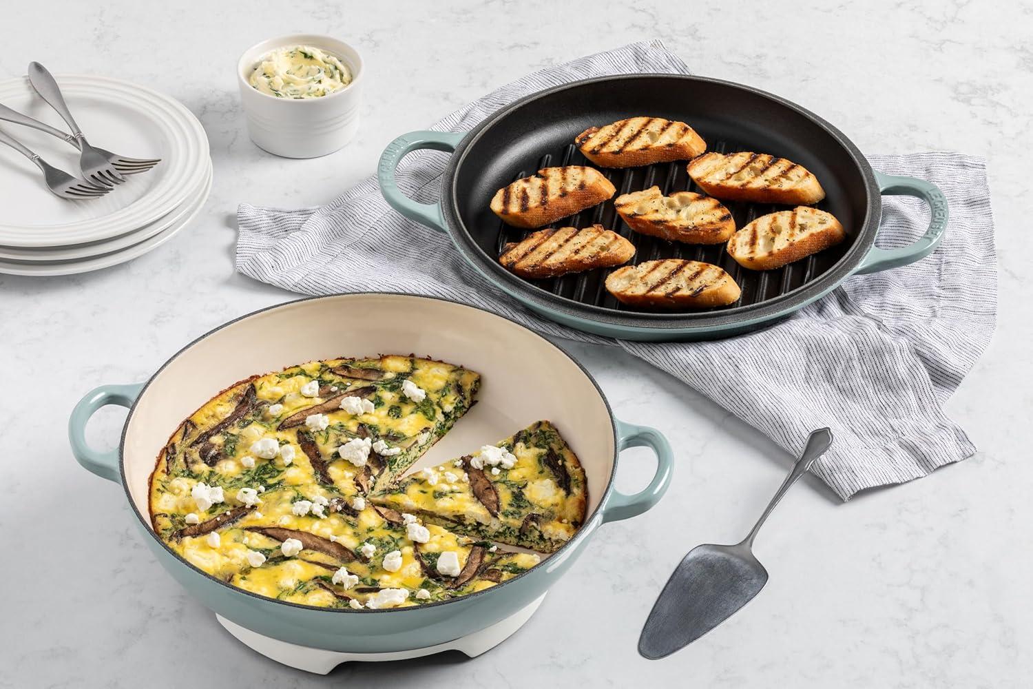 The innovative design of the Multifunction Braiser with Grill Pan Lid combines the functionality and versatility of a braiser with a lid that doubles as a grill pan – it’s essentially two pans in one. Use them separately for any number of recipes, or use them together to braise, grill, roast, bake, sauté and more. Both pans are expertly crafted from our legendary enameled cast iron for exceptional heat distribution and retention for superior culinary results from stove to oven to table, and the porcelain enamel requires no seasoning, minimizes sticking and is dishwasher-safe.