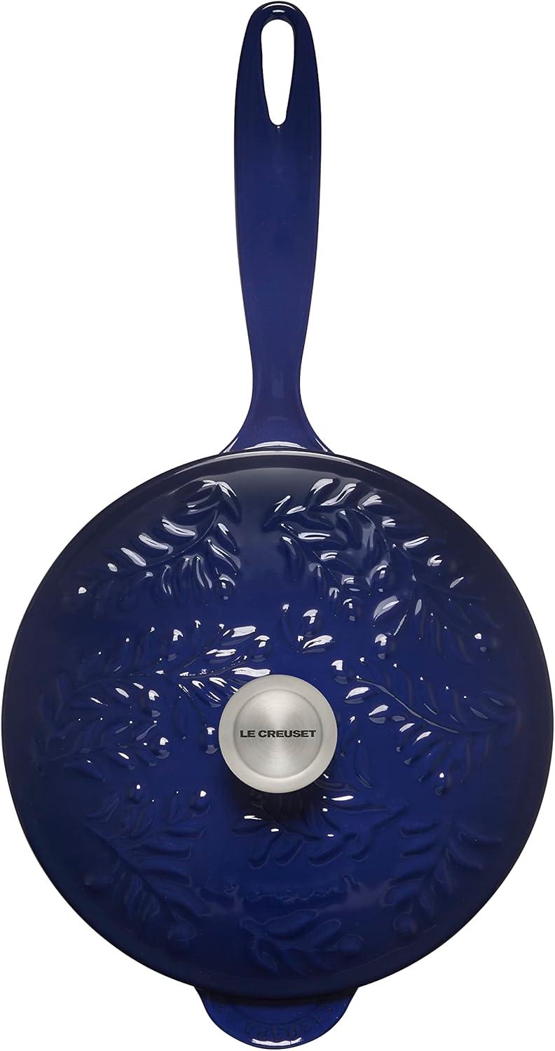 The Olive Branch Saucier is embossed with a refined olive branch motif inspired by the sun-drenched fields of Provence that is a sophisticated addition to any kitchen. A chef’s favorite, the Saucier has a smooth contoured interior that is optimal for making sauces, risotto or sautéing vegetables. Sloping sides and a rounded bottom facilitate stirring and whisking, while the broad surface area allows liquids to evaporate quickly. Crafted from our legendary enameled cast iron, the Saucier has exceptional heat distribution and retention qualities to lock in flavor and moisture and keep dishes warm from stove to oven to table. The colorful enameled surface minimizes sticking and staining, requires no pre-seasoning, and is easy-to-clean.
