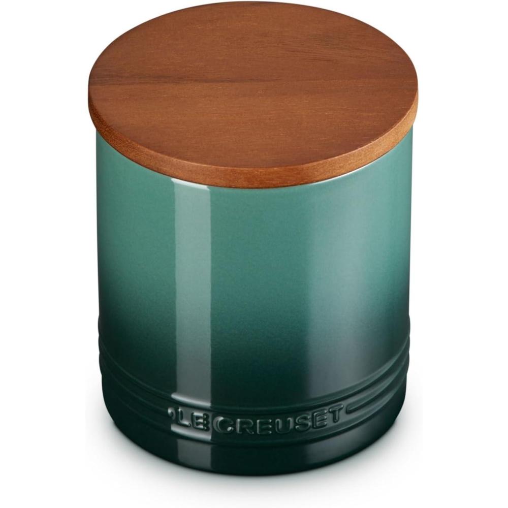 Le Creuset Signature Salt Cellar and Storage Canister with Wood Lid, 7 oz., Shallot(Artichaut)