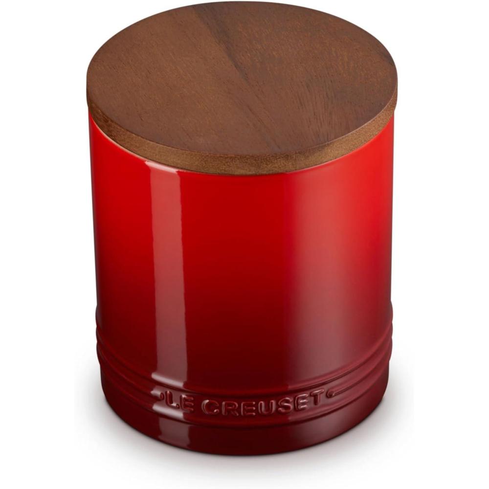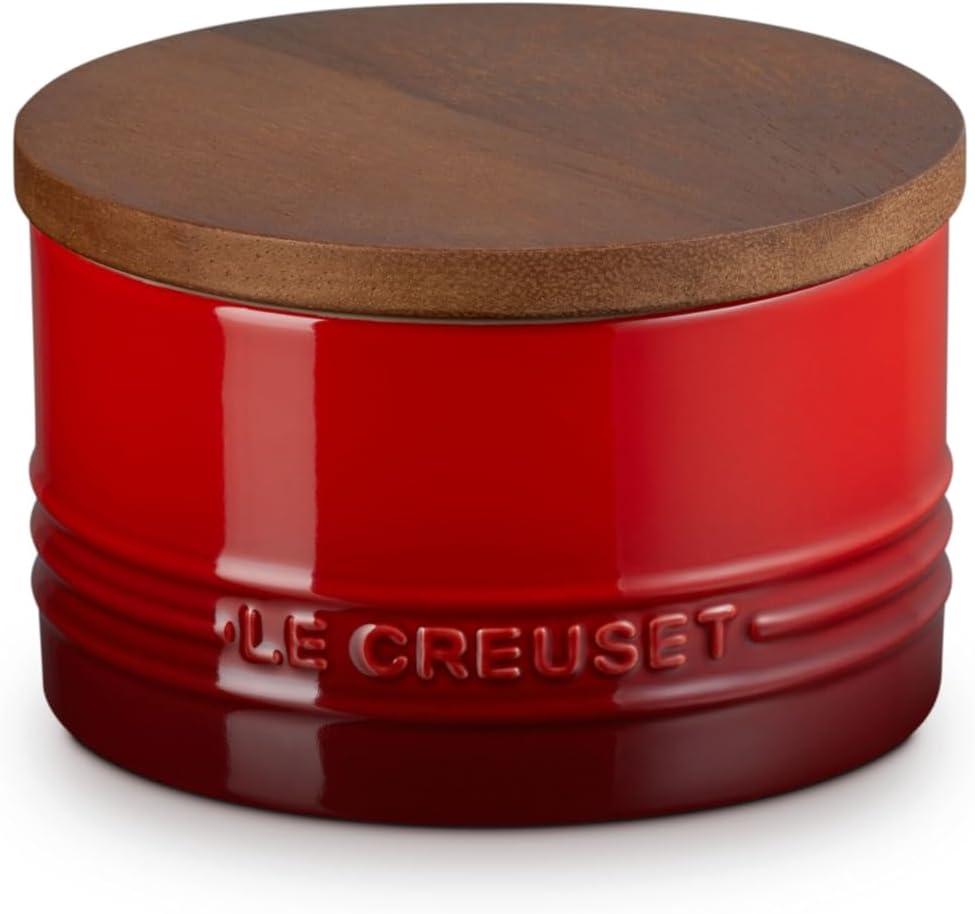 Le Creuset Signature Salt Cellar and Storage Canister with Wood Lid, 7 oz., Shallot(Cerise)