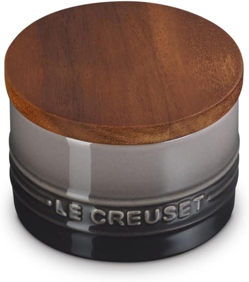 Le Creuset Signature Salt Cellar and Storage Canister with Wood Lid, 7 oz., Shallot(Oyster)