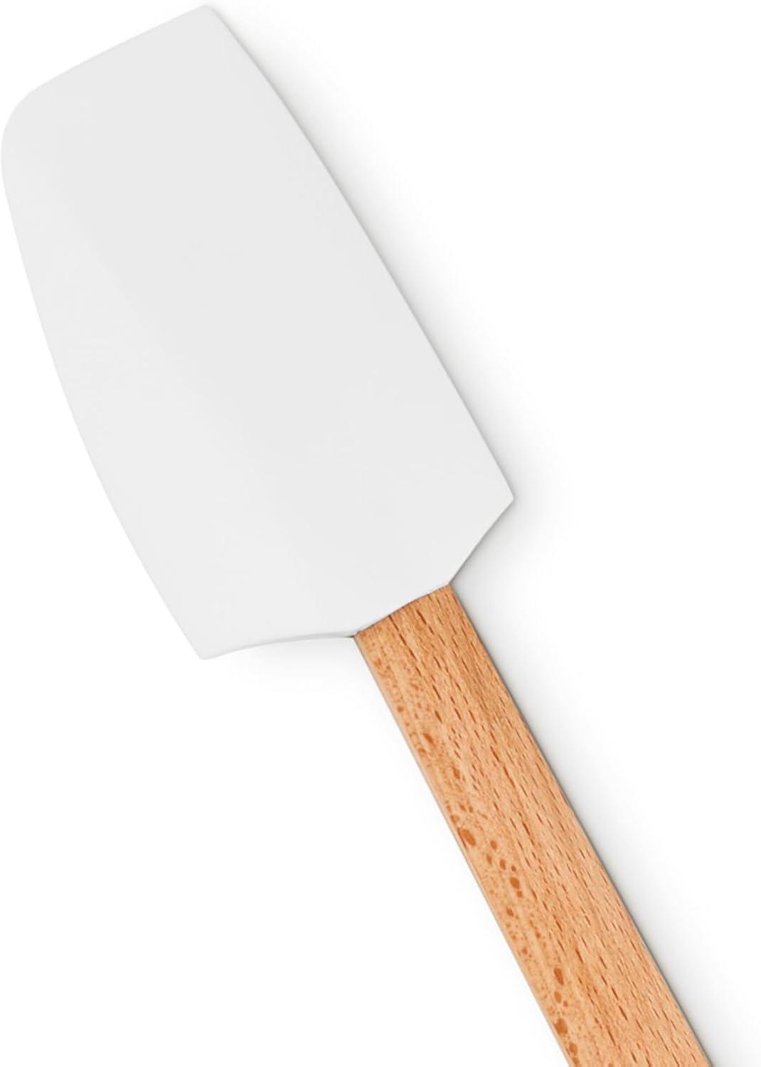 Le Creuset's Signature Silicone Medium Spatula is a kitchen essential for mixing, folding and scraping with ease. Designed for everyday use and long-lasting durability, the head is constructed from hygienic and heat-resistant silicone. Finished with a cartouche opening, curved end, and FSC-certified beech wood handle, it combines function with lasting durability.