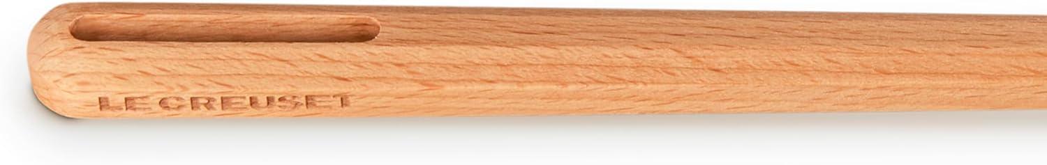 Ergonomic, FSC-certified beech wood handles with flat edges are designed to seamlessly rest on a spoon rest or Dutch Oven handle for optimal kitchen functionality