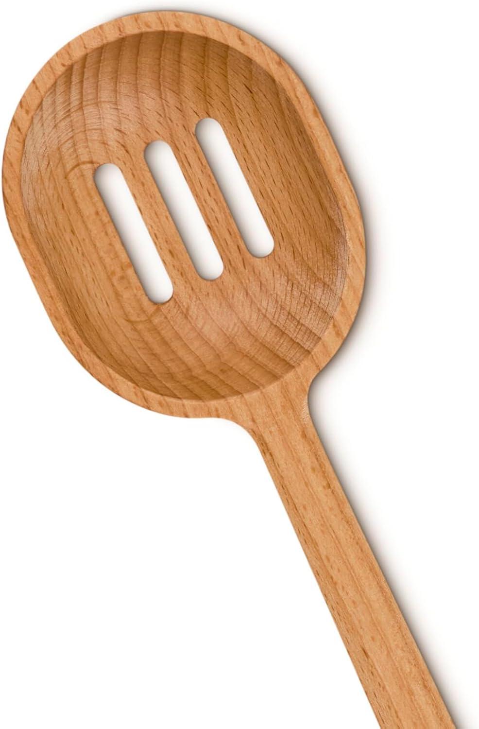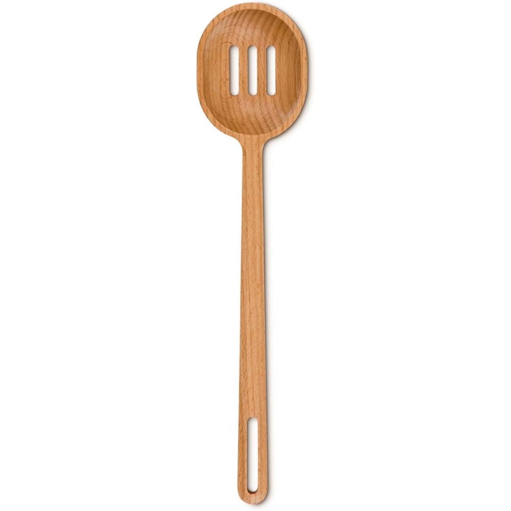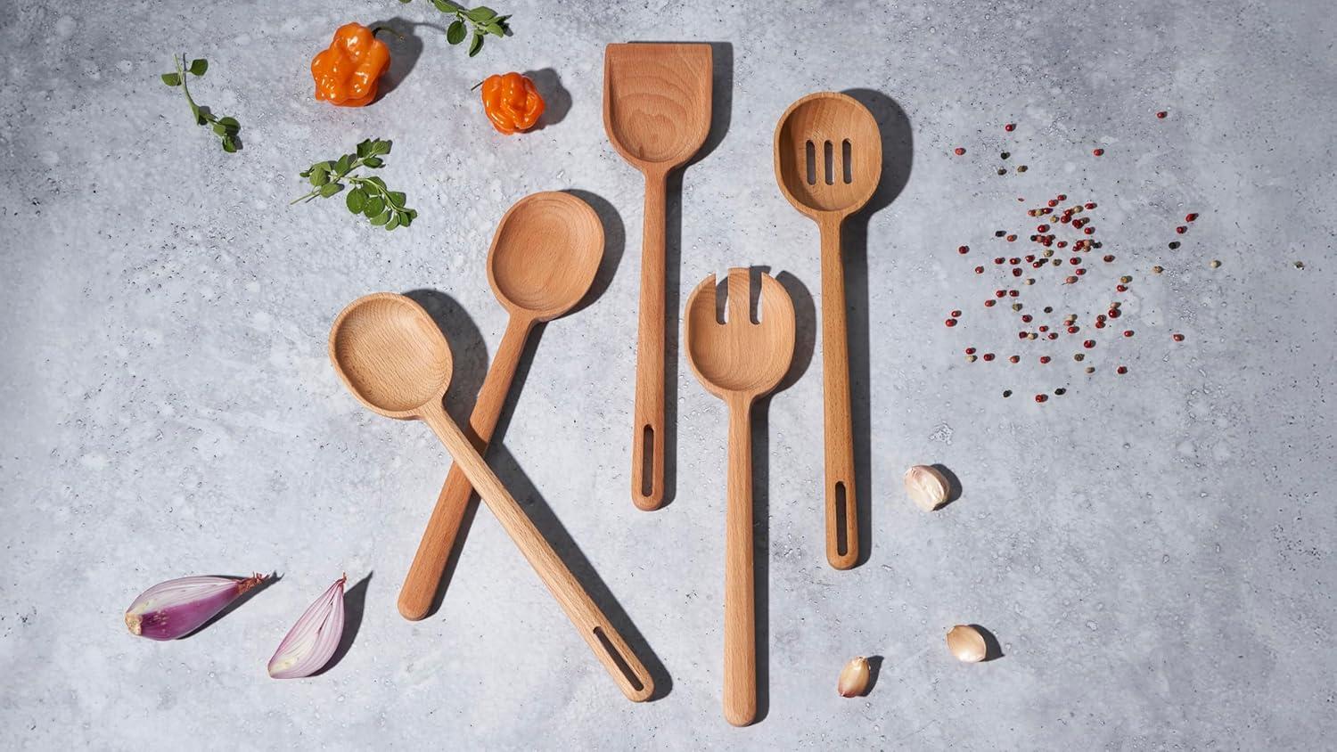 FSC-Certified beech wood is gentle on non-stick surfaces and other delicate cookware