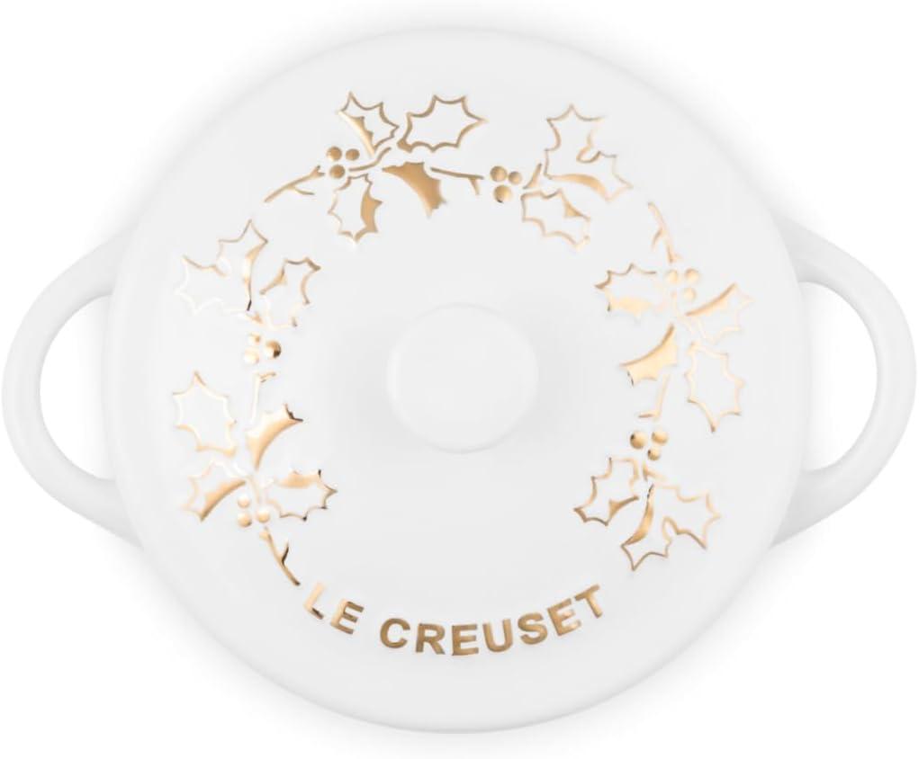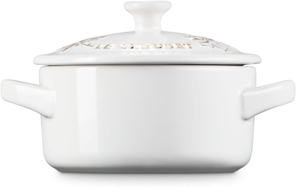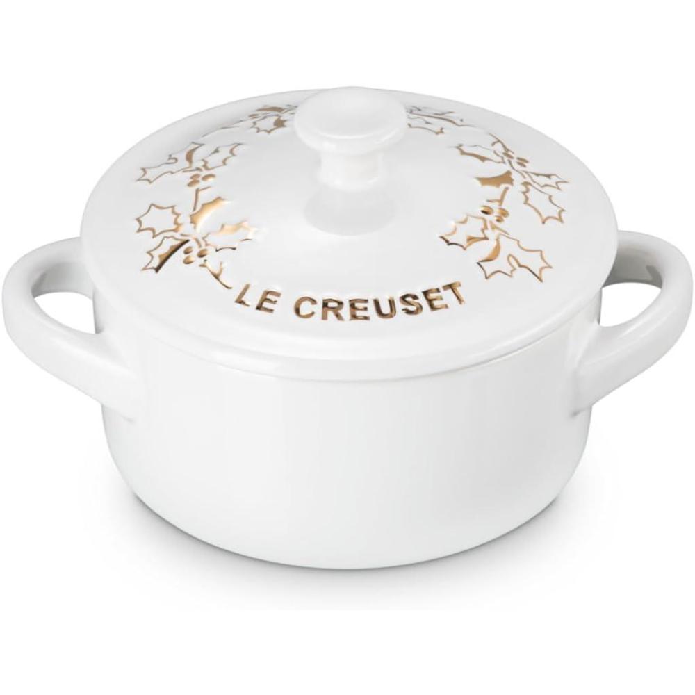 Le Creuset Stoneware Holly Collection MIni Round Cocotte, 8 oz., Coastal Blue with Gold Applique(White)